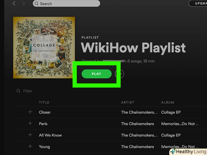 Прослухайте свій список.відкрийте список відтворення та натиснітьSHUFFLE PLAY(відтворити у випадковому порядку) на мобільному пристрої абоPLAY (відтворити) у верхній частині вікна списку відтворення на ПК.- У списку на ПК будуть відтворюватися пісні з Вашого списку, після чого будуть вибиратися пісні інших жанрів. У безкоштовній версії на мобільному пристрої список буде складатися з ваших пісень упереміш з іншими композиціями схожих жанрів.