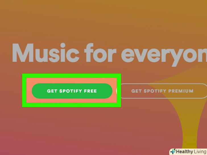 НатиснітьGET SPOTIFY FREE (користуватися безкоштовно).Зелена кнопка знаходиться в лівій частині сторінки.