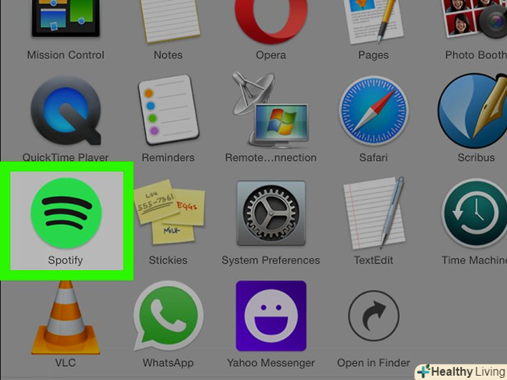 Запустіть Spotify.Іконка Spotify виглядає як зелене коло з чорними горизонтальними лініями. Натисніть на іконку на мобільному пристрої або двічі клацніть мишкою по ярлику Spotify на ПК.- Якщо у Вас ще не встановлено додаток Spotify, то його можна отримати за посиланнями: