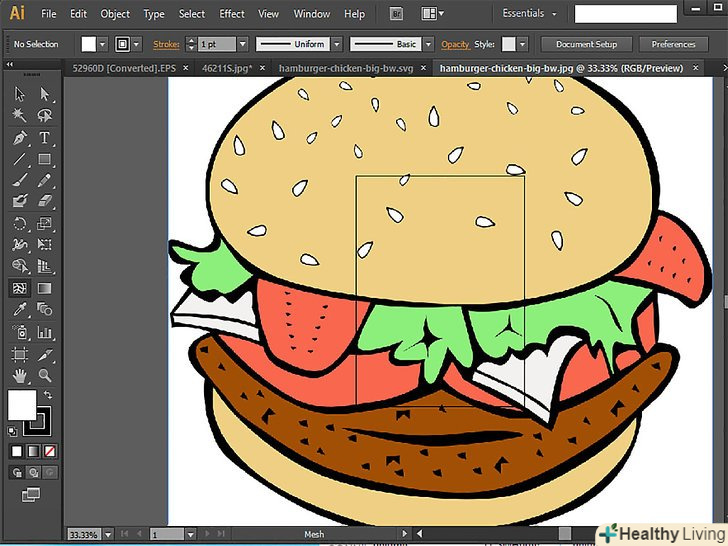 Перевірте свою здатність використання кольорових інструментів, намалювавши гамбургер від початку до кінця, використовуючи статтю 'Як намалювати гамбургер в Adobe Illustrator'