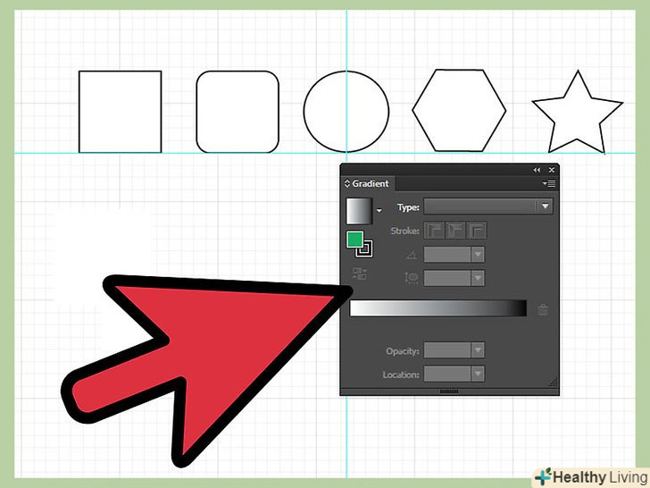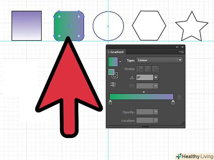 Щоб застосовувати різні типи градієнта, вам потрібно буде його вибрати, або просто натисніть на вкладці "градієнти" і перетягніть вікно ближче до фігур.