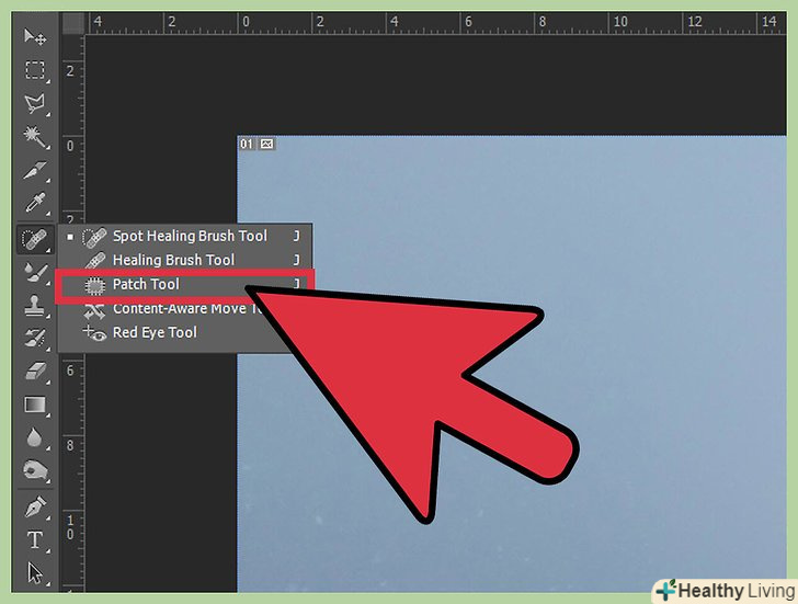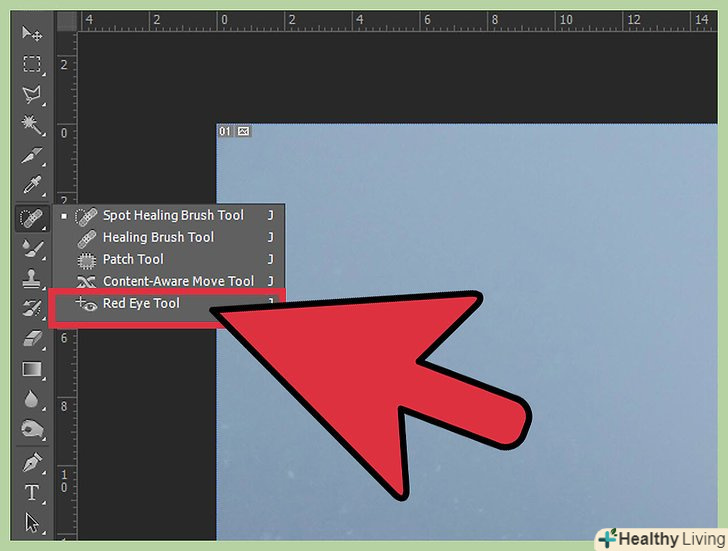 Використовуйте інструмент "червоні очі", щоб зробити красиві очі в будь-якому портреті.для виклику даного інструменту необхідно відкрити інструмент» латочка", який знаходиться під іконкою у вигляді піпетки на панелі інструментів. Також можна натиснути клавішу "J", потім клацнути і утримувати покажчик миші на іконці заплатки, щоб вибрати потрібний інструмент. Потрібно лише клацнути і перетягнути покажчик по очах, щоб прибрати ефект червоних очей.[4]