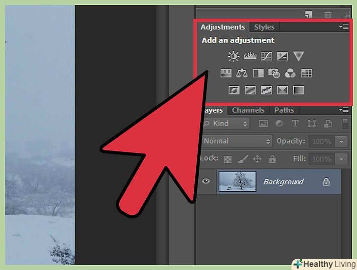 Навчіться використовувати коригувальні шари, щоб постійно контролювати всі зміни.останнє, що вам захочеться — експериментувати з кольорами, контрастністю, насиченістю без можливості повернути колишні налаштування. На додаток до рекомендації завжди робити копію зображення перед редагуванням, коригувальні шари і маски дозволять вам виправити всі налаштування на будь-якому етапі роботи, а також включати і відключати їх без функції «скасувати».- Клацніть вкладку "вікно" на верхній панелі.