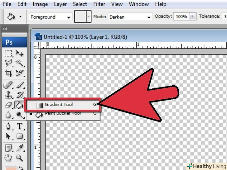 У новому шарі створіть фонове зображення.виберіть інструмент завдання градієнта, клікніть на меню зліва, щоб погратися з квітами. Виберіть фон, на якому буде добре видно текст. Використовуючи градієнт, проведіть лінію через все зображення, щоб задати градієнтний перехід між кольорами. Щоб перехід був різкіше, намалюйте більш коротку лінію.