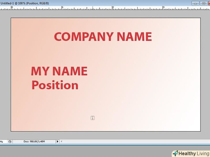Кожен фрагмент тексту доставте на новий шар за допомогою інструменту "Текст". для імені та назви компанії використовуйте шрифт побільше, щоб виділялося. Шрифти, стилі-тут вже на ваш смак. Контактну інформацію можна і менш крупно вказати. Врахуйте, що текст повинен читатися без проблем-люди не повинні гадати, що це у вас там в електронній адресі - рядкова L або 1.
