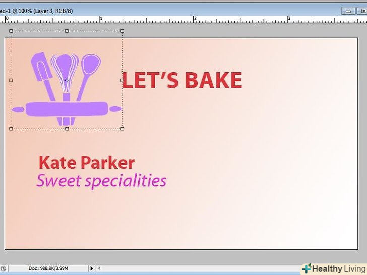 За бажанням, додайте логотип компанії.якщо у вас є логотип компанії, відкрийте його в Photoshop, скопіюйте (при необхідності можете зменшити розмір) за допомогою Quick Selection Tool так, щоб виділити якомога ближче до логотипу. Потім інвертуйте виділення (Ctrl + Shift + I) і видаліть фон. Тепер логотип готовий (або майже готовий) до використання в Візитці.