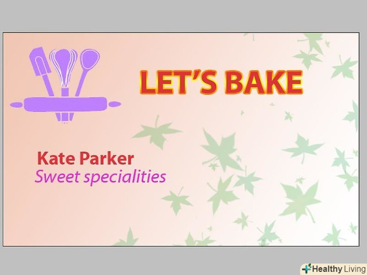 Додайте зображення до теми. Ними можна вдало закрити порожні місця. Відкрийте ваше зображення (або те, на використання якого у вас є дозвіл), виділіть потрібну частину і вставте його до себе на візитку. Можна зробити цілий колаж з використанням різних кистей і зображень. Розміщуйте фрагменти на окремих шарах, в кінці об'єднайте ті шари. Скопіюйте отримане зображення на новий шар вашої візитки і зменшіть прозорість до 30-40%.