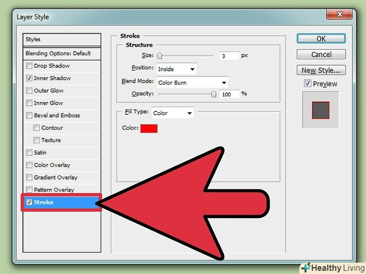 Змініть стиль шару.для цього двічі клацніть по певному шару на панелі шарів; відкриється вікно "Стиль шару". Додайте рамку, вибравши опцію "обведення", або додайте тінь, вибравши однойменну опцію, або додайте будь-який інший ефект.- Не натискайте на назву шару; інакше відкриється рядок введення нового імені шару. Клацніть по простору за ім'ям шару.