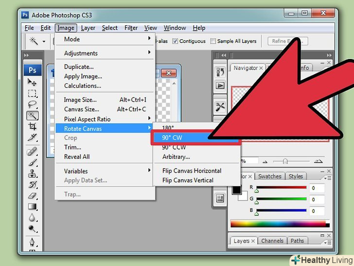 Орієнтацію полотна зробіть альбомною.в цьому випадку колаж буде виглядати набагато краще. Щоб повернути полотно, в рядку меню (зверху) натиснітьЗображення – Поворот зображення - 90.