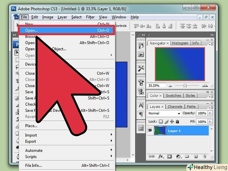- У Photoshop можна відкрити графічні файли певних форматів. Якщо зображення не відкривається в Photoshop, знайдіть файл на комп'ютері і двічі клацніть по ньому, щоб відкрити картинку в іншій програмі. Щоб змінити формат зображення на JPEG, PNG або BMP, натисніть < span class="nowrap" title="This is not a clickable button; it illustrates the button one should find." style="font-family: Segoe UI, Frutiger, Frutiger Linotype, Dejavu Sans, Helvetica Neue, Arial, sans-serif;letter-spacing:0px;padding:0em .6em; border:1px solid; border-color:#AAA #555 #555 #AAA; -moz-border-radius: 0px; -webkit-border-radius: 0px; border-radius: 0px; background-color: #F2F2F2; background-image:-moz-linear-gradient(top, #FCFCFC, #E0E0E0); background-image:-o-linear-gradient(top, #FCFCFC, #E0E0E0); background-image:-webkit-linear-gradient(Top, #fcfcfc, #e0e0e0); background-image: linear – gradient(Top, #fcfcfc, #e0e0e0);">файл -Зберегти як, а потім відкрийте файл у Photoshop. Якщо це не спрацювало, в Інтернеті знайдіть конвертер зображень.