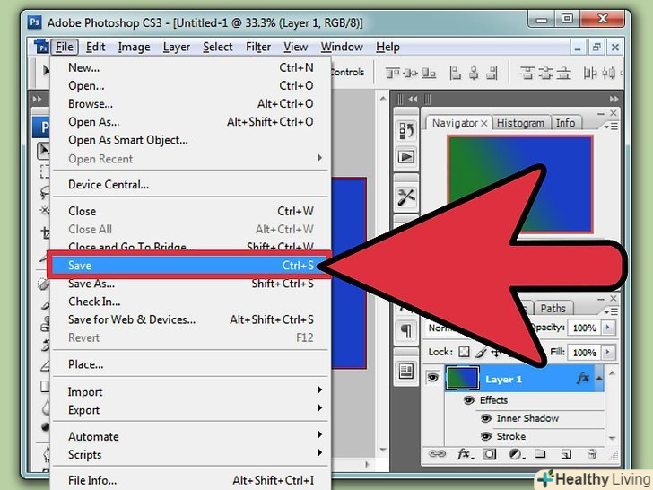 Збережіть документ. натисніть < span class=" nowrap "title=" This is not a clickable button; it illustrates the button one should find." style="font-family: Segoe UI, Frutiger, Frutiger Linotype, Dejavu Sans, Helvetica Neue, Arial, sans-serif;letter-spacing:0px;padding:0em .6em; border:1px solid; border-color:#AAA #555 #555 #AAA; -moz-border-radius: 0px; -webkit-border-radius: 0px; border-radius: 0px; background-color: #F2F2F2; background-image: -moz-linear-gradient(top, #FCFCFC, #E0E0E0); background-image: -o-linear-gradient(top, #FCFCFC, #E0E0E0); background-image:-webkit-linear-gradient(top, #FCFCFC, #E0E0E0); background-image: linear – gradient(top, #FCFCFC, #E0E0E0);">Файл - Зберегти. У рядку «Ім'я» введіть «Колаж Photoshop» або інше запам'ятовується ім'я. При редагуванні документа регулярно зберігайте його, щоб в разі збою внесені зміни не були загублені.