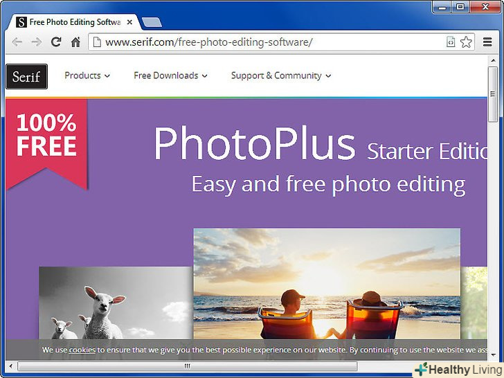 Встановіть Serif Photo Plus. безкоштовна версія фото-редактора Serif, можливо, не володіє всіма тими можливостями, що і Photoshop, але вона просто створена для детального фото-редагування. Видалення червоних очей, коригування колірної гами і кілька основних фільтрів - це програма ідеально підійде тим, хто хоче зробити свої сімейні фото трохи краще.- Ви можете легко завантажити Serif Photo Plus за посиланнямсайт the Serif.