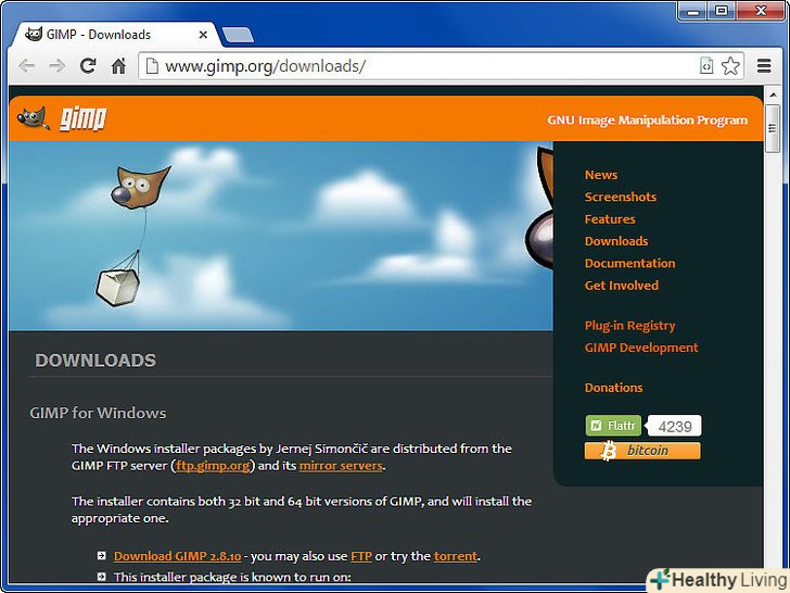 - Ви можете завантажити GIMP за посиланнямофіційний сайт.