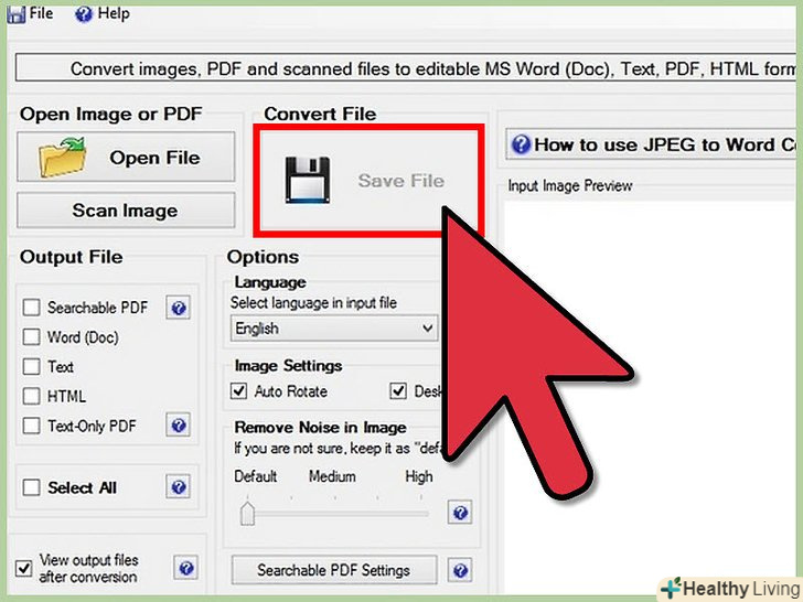Відкрийте в програмі файл JPEG і виберіть формат Word як вихідний формат файлу. натисніть на кнопку "Зберегти".