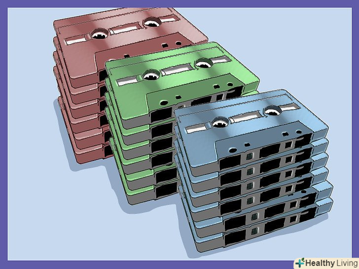 Знайдіть необхідне обладнання.створення класичного касетного збірника вимагатиме наявності порожньої аудіо-касети, програвача з функцією запису, колекції музики, записаної на касети або CD і шнур для підключення програвача до записуючого пристрою, якщо вони не є одним цілим.- Виберіть довжину плівки. Зазвичай касети в продажу доступні в декількох розмірах. Використовуйте 60-хвилинні або 90-хвилинні касети для збірок, так як якість звуку на 120-хвилинних помітно гірше.
