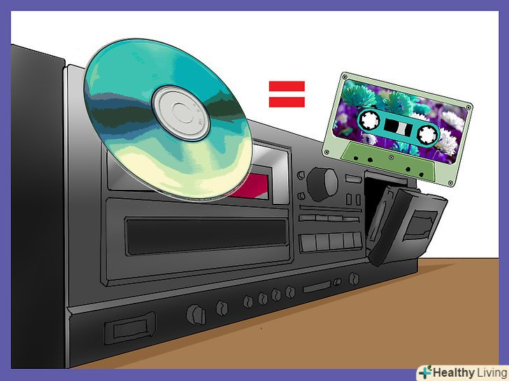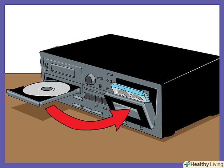 Збережіть пісні на CD.якщо ваша музична колекція зберігається на комп'ютері, але ви все ж хочете подарувати старомодний касетний Збірник, не все втрачено. Запишіть пісні на CD c комп'ютера, а потім на касету з CD. При записі диска переконайтеся, що ви записуєте музичний диск, а не диск з даними, так як диск з даними може не коректно працювати зі стерео-файлами.- Якщо у вас є спосіб відтворити ваші MP3 файли на музичному центрі прямо з комп'ютера, то ви зможете записати касету безпосередньо.