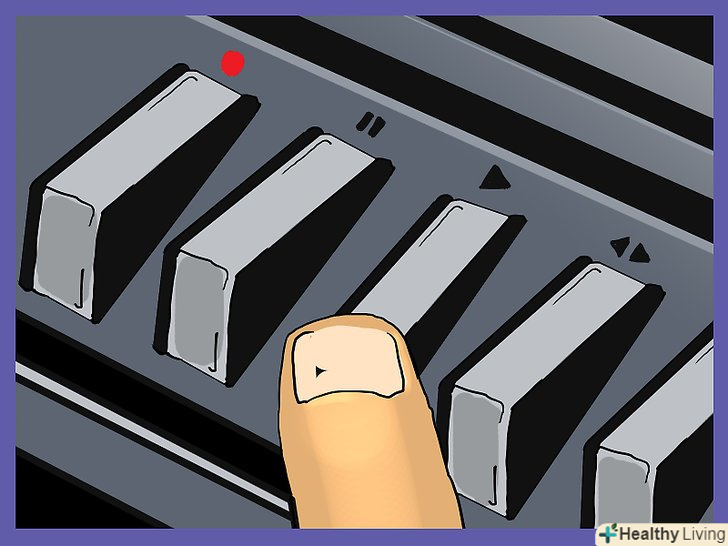 Запишіть пісню. натисніть кнопку запису на записуючій деці (це також "натисне" кнопку програвання). І потім запустіть відтворення обраної пісні з джерела.- Якщо ви записуєте з платівки, опустіть голку незадовго до початку потрібної пісні і, коли запис досягне проміжку тиші між піснями, натисніть кнопку запису.