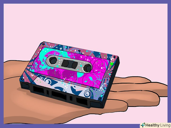 Додайте мистецтва!це не обов'язково повинен бути малюнок або начерк (хоча вони теж цілком підійдуть), це означає Будь-який вид прикраси носія (касети, диска або флешки), який робить його унікальним і впізнаваним.- Розфарбуйте! Кольорові маркери-перевірена часом методика прикраси касет. Вони яскраво виділяють будь-яку паперову поверхню з мінімальними складнощами. Спробуйте який-небудь абстрактний візерунок або різнокольорові великі літери. Навіть простим чорним маркером можна перетворити касету в зебру або спіральну галактику.