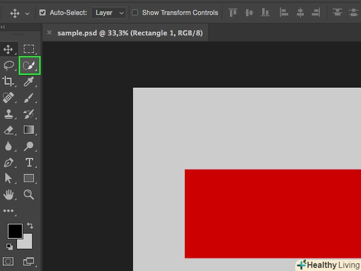 Візьміть інструмент "Швидке виділення". цей значок у вигляді кисті з пунктирним контуром розташований вгорі панелі інструментів в лівій частині вікна. Візьміть інструмент "Швидке виділення". цей значок у вигляді кисті з пунктирним контуром розташований вгорі панелі інструментів в лівій частині вікна.- Якщо цей інструмент не відображається, натисніть на «Чарівна паличка», щоб відкрити меню з потрібним інструментом.