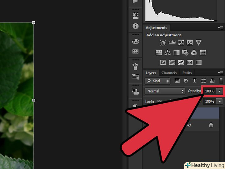 Відкрийте меню "непрозорість".воно знаходиться у верхній частині панелі "Шари". Відкрийте меню "непрозорість".воно знаходиться у верхній частині панелі "Шари".