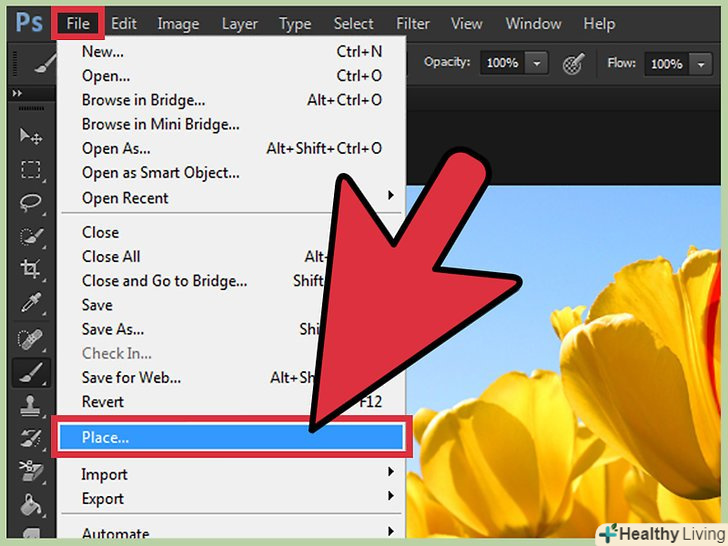 Додайте друге зображення на новий шар. натисніть "Файл" gt; «помістити» і знайдіть друге зображення, яке потрібно змішати з першим (базовим) зображенням. Додайте друге зображення на новий шар. натисніть "Файл" gt; «помістити» і знайдіть друге зображення, яке потрібно змішати з першим (базовим) зображенням.