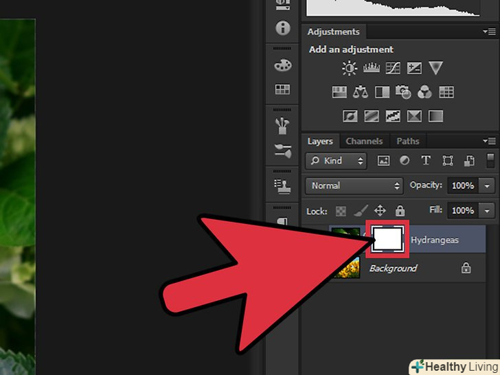 Клацніть по "додати шар-маску".ця кнопка виглядає як квадрат з колом і розташована в нижній частині панелі "Шари". Мініатюра маски відобразиться поруч із шаром, до якого вона додана. Клацніть по "додати шар-маску".ця кнопка виглядає як квадрат з колом і розташована в нижній частині панелі "Шари". Мініатюра маски відобразиться поруч із шаром, до якого вона додана.