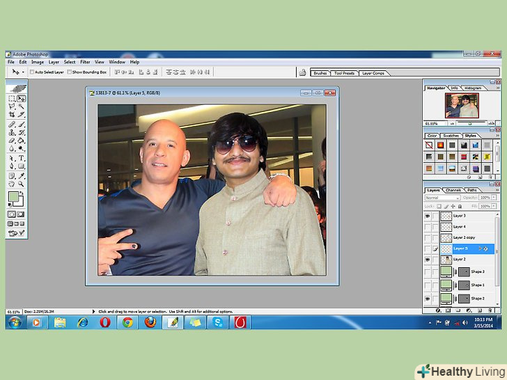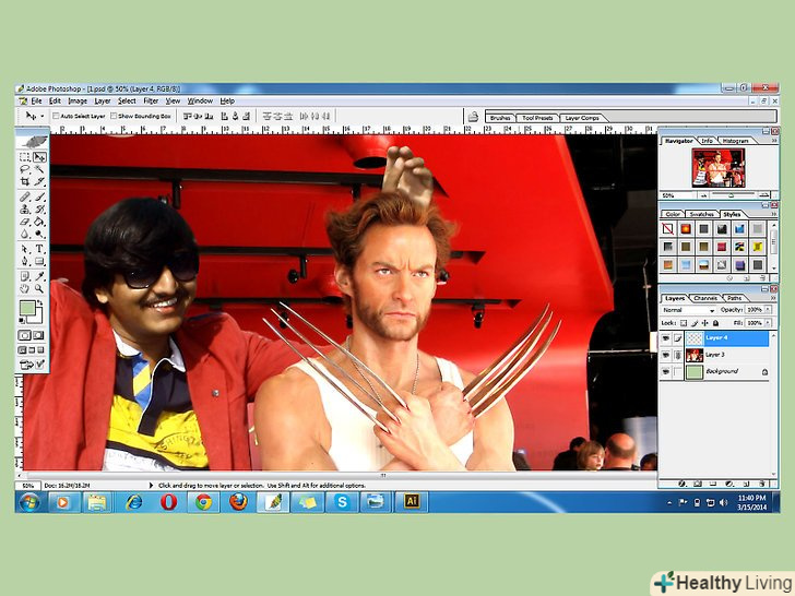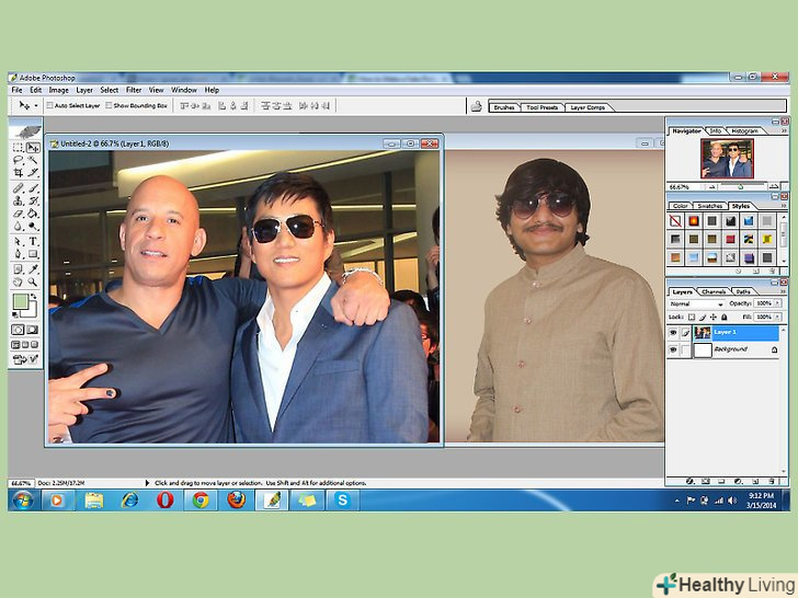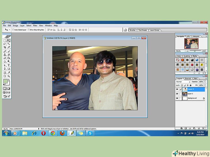 Відкрийте обидві фотографії в графічному редакторі за вашим вибором. Photoshop дуже популярний, але ви також можете знайти безкоштовні онлайн редактори, які працюють так само добре. Відкрийте обидві фотографії в графічному редакторі за вашим вибором. Photoshop дуже популярний, але ви також можете знайти безкоштовні онлайн редактори, які працюють так само добре.