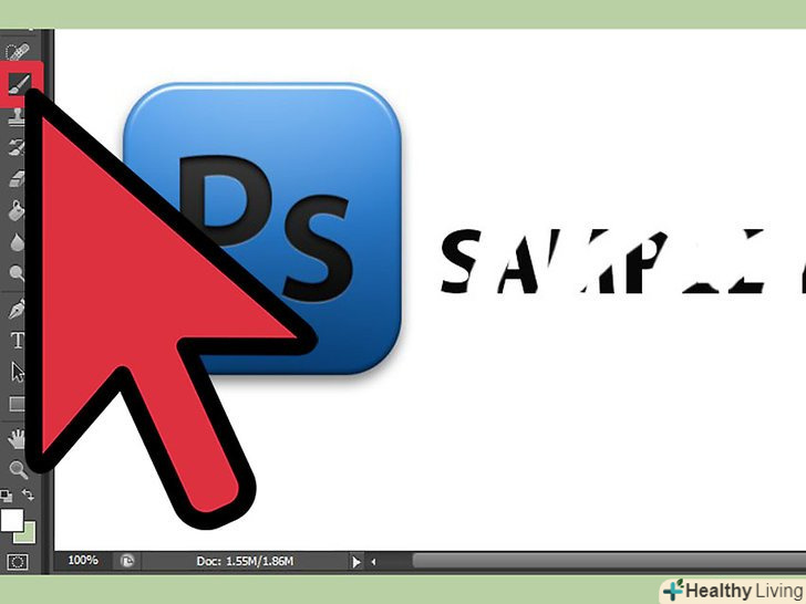 Видаліть старий текст. це може бути зроблено по-різному, наприклад, наступними двома способами: Видаліть старий текст. це може бути зроблено по-різному, наприклад, наступними двома способами:- Перший і найпростіший спосіб: зафарбуйте текст тим же кольором, що і фон. Це може бути зроблено за допомогою інструменту "піпетка", який дозволить вам вибрати потрібний колір (для цього виберіть інструмент і клацніть їм по області зображення з потрібним кольором). Після того, як колір обраний, ретельно зафарбуйте текст, використовуючи інструмент «Кисть». Залиште невеликий фрагмент тексту, щоб не забути його колір.