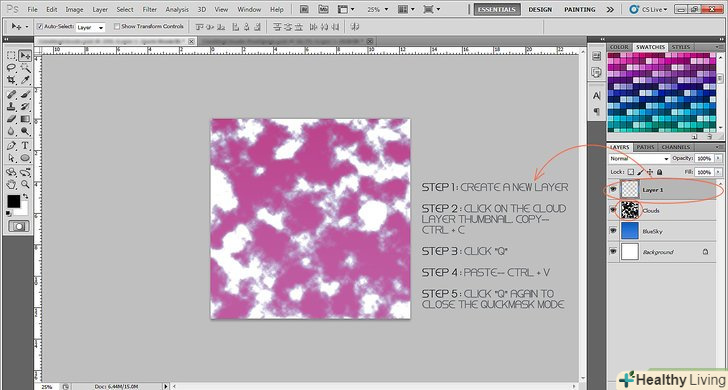 - Натисніть на мініатюру вашого шару з хмарами, щоб виділити все, або ви можете натиснути комбінацію клавіш Ctrl + A. потім скопіюйте вміст або використовуйте комбінацію Ctrl + C.