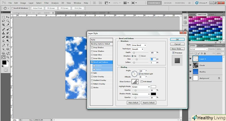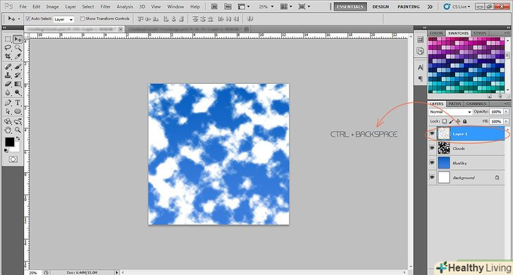 Наступний крок-це створення текстури і тіні від хмар. Наступний крок-це створення текстури і тіні від хмар.- Спочатку створіть новий шар. Створіть новий шар, натиснувши Shift + Ctrl + N.