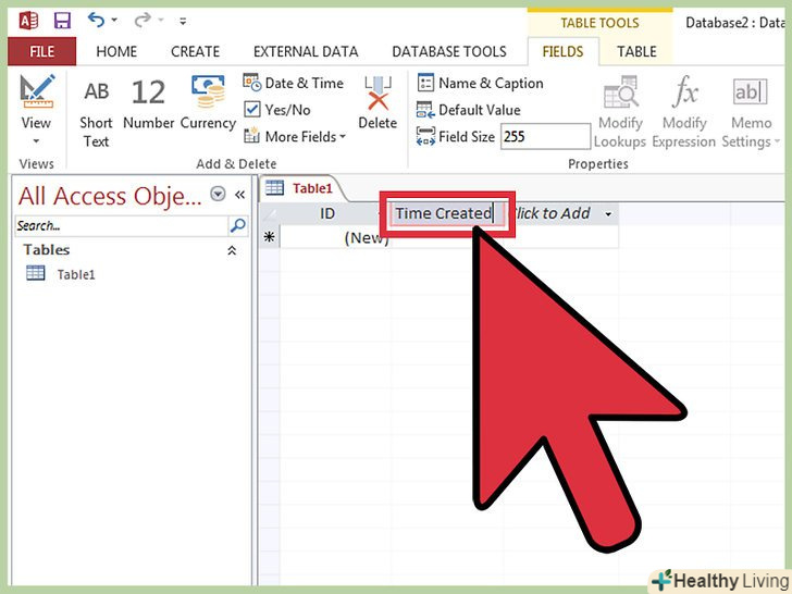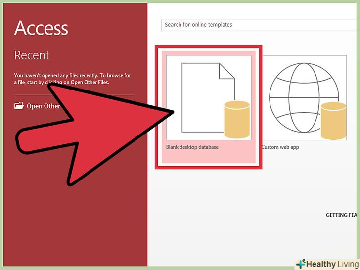 Виберіть "порожня база даних робочого столу«, а потім натисніть»Створити".ви зможете поекспериментувати з іншими варіантами, коли освоїте основи. При першому запуску програма створить новий файл з ім'ям за замовчуванням "Database1 «і чистою таблицею»Таблица1".- Бази даних зберігають дані у вигляді таблиць, які повідомляють Access, де слід розмістити дані, які ви вносите в комірки таблиці, на жорсткому диску.