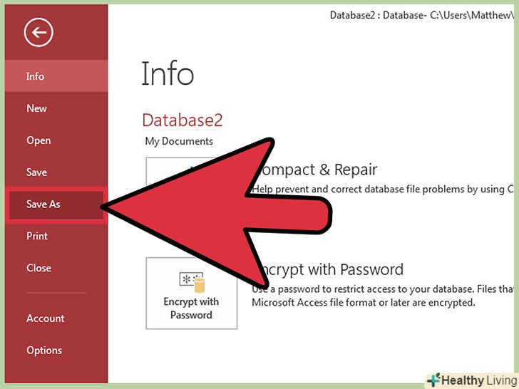 Збережіть таблицю.для цього відкрийте вкладку "Файл «і натисніть кнопку»Зберегти як". Нічого не змінюйте в Налаштуваннях за замовчуванням і знову натисніть кнопку "Зберегти як". Натисніть кнопку "Так", Коли вас попросять підтвердити закриття всіх відкритих об'єктів в Microsoft Access. Файл збережеться.- Якщо ви коли-небудь вирішите перенести базу даних в хмарне сховище або на інший пристрій, скористайтеся спеціальною функцією Access, щоб переформатувати дані для нової платформи. Просто натисніть кнопку "Файл«, а потім» зберегти як" і виберіть один з форматів, представлених на панелі праворуч.