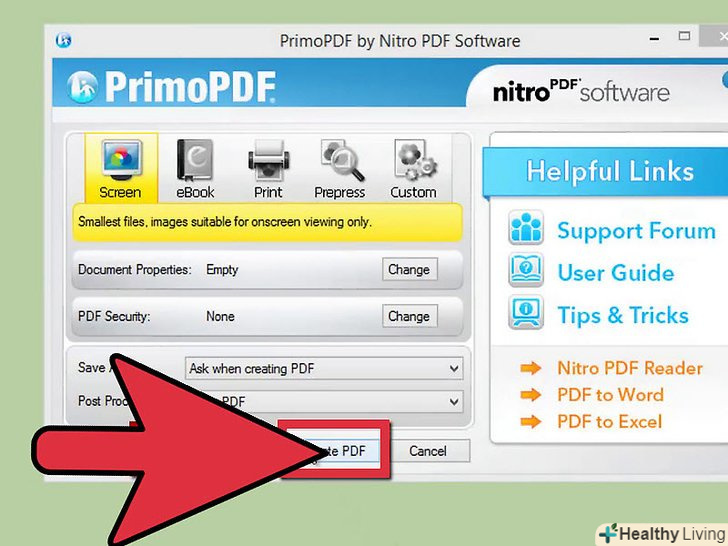 Завантажте програму для створення PDF. є багато безкоштовних програм для створення PDF-файлів, включаючи PDFCreator, PDF factory Pro і PrimoPDF. Ви можете знайти і завантажити ці програми в Інтернеті. Також існує ймовірність того, що у вас на комп'ютері вже є програма для створення PDF, така як Adobe Acrobat Pro (для створення PDF) або Adobe Reader (для читання і перегляду PDF). Пошукайте програму для створення PDF на вашому комп'ютері, перш ніж завантажувати її.
