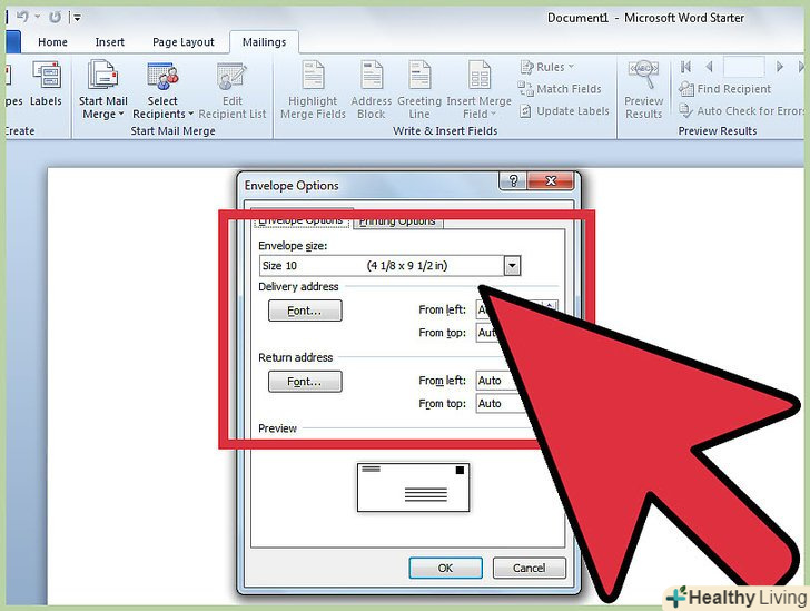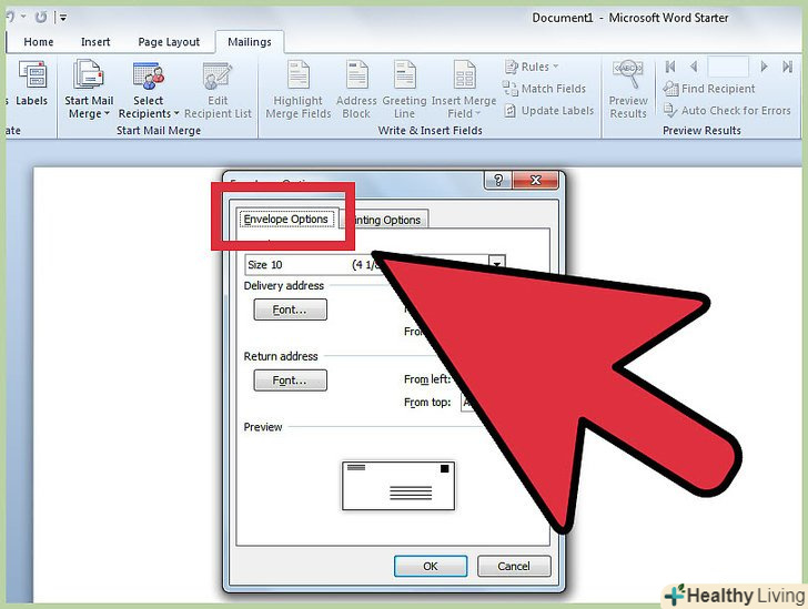 У рядку «Delivery»(Доставка) Введіть поштову адресу одержувача.ви також можете ввести поштову адресу відправника. Натисніть "Options"(Параметри).