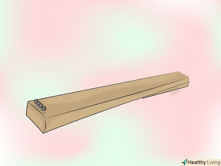 Прикріпіть кільцеподібні гвинти на кінець грифа-стільки, скільки буде струн.прикрутіть брусок на корпус протилежно грифу і також вверніть туди гвинти. Чи не вгвинчуйте їх до упору, оскільки їм потрібно буде крутитися в процесі настройки банджо.