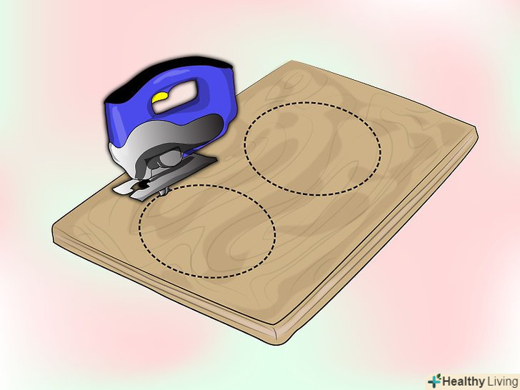 Проведіть два кола потрібного діаметру, в залежності від того, якого розміру буде ваше банджо.випиляєте їх, намагаючись йти прямо по наміченої лінії, так як ці деталі будуть з'єднані між собою.