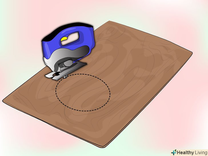 Виріжте коло з фанери високої якості, який буде закривати одну сторону корпусу.його можна відзначити, обвівши цей же корпус або ж використовувати те ж саме відро, що і на початку. Якщо хочете, зробіть цей шматок фанери трохи більшим в діаметрі, щоб пізніше відшліфувати виступаючі краї для більш щільного з'єднання.