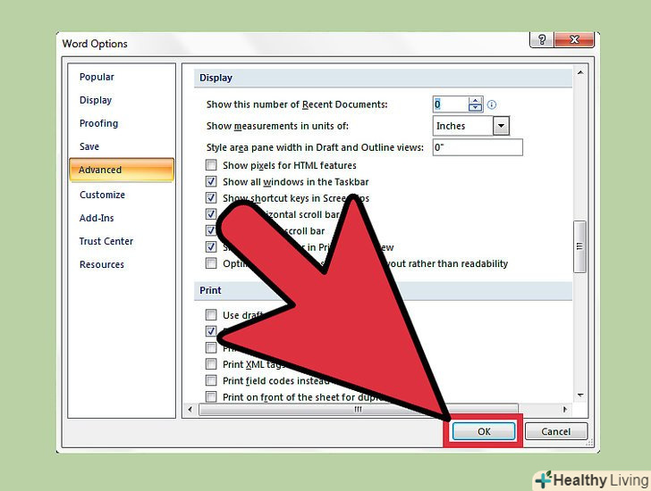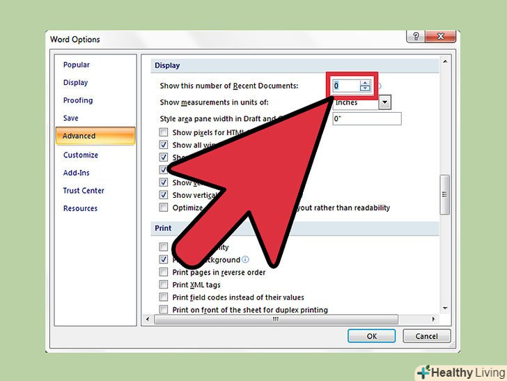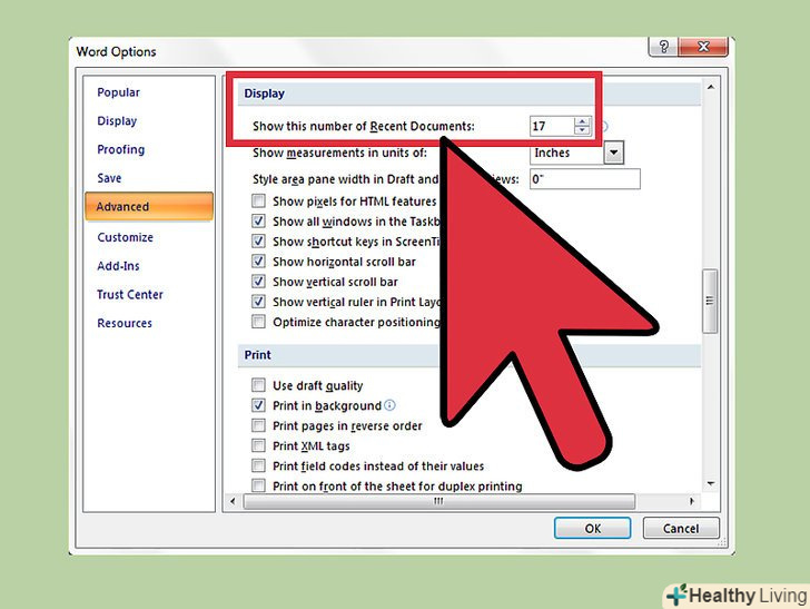 У розділі «Екран» знайдіть опцію "Число документів у списку останніх файлів".