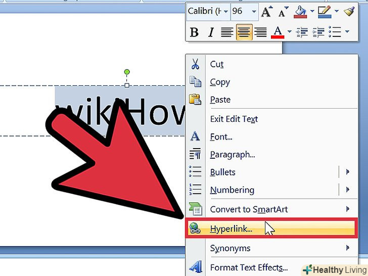 Виділіть його.для цього клацніть по ньому правою кнопкою миші. Натисніть У спливаючому меню на посилання» гіперпосилання " (Hyperlink).