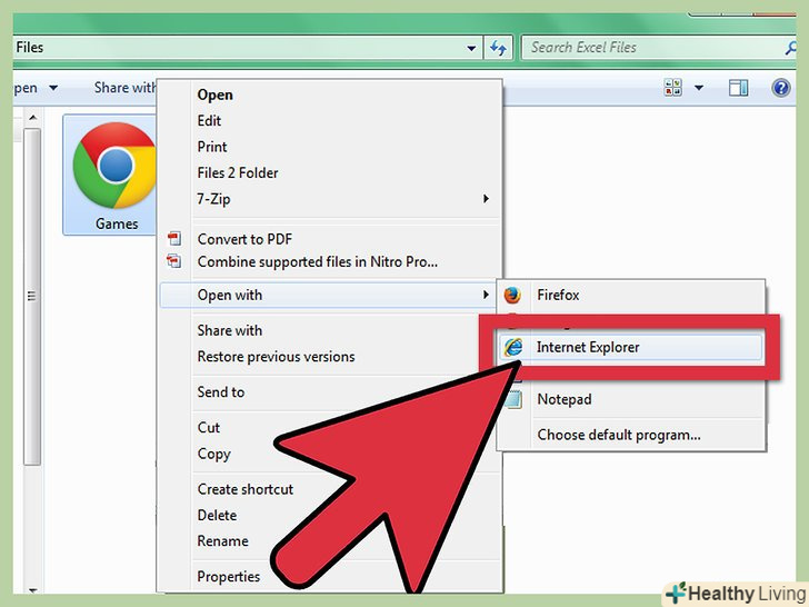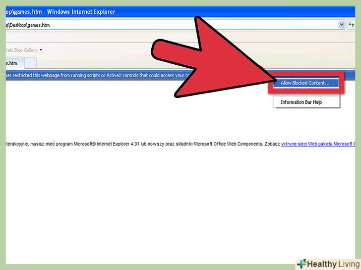 Відкрийте .htm файл через Internet Explorer. клацніть правою кнопкою миші на файлі, а під Відкрити за допомогою ... виберіть Internet Explorer.- Якщо IE просить дозволу на запуск ActiveX, погодьтеся.