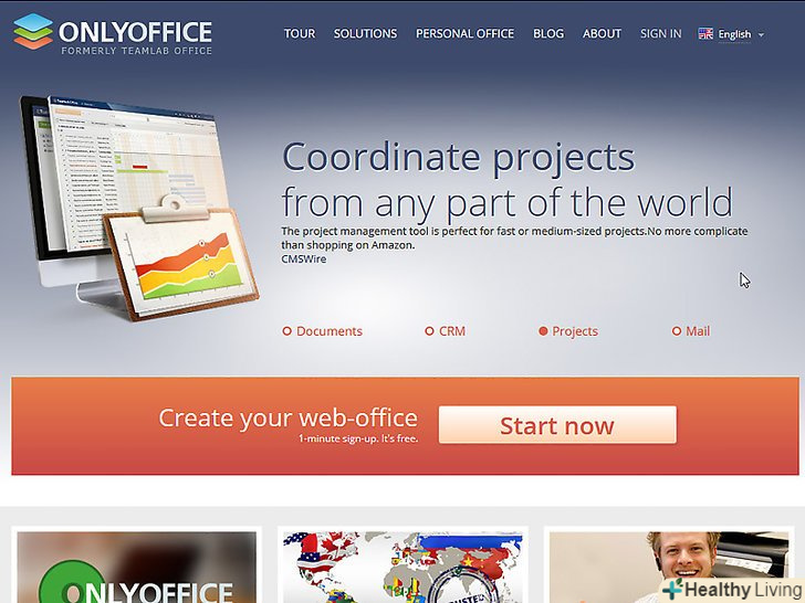 Відкрийте сайт сервісу ONLYOFFICE. [3] це безкоштовний сервіс, зареєструватися на якому можна через соціальні мережі або електронну пошту.