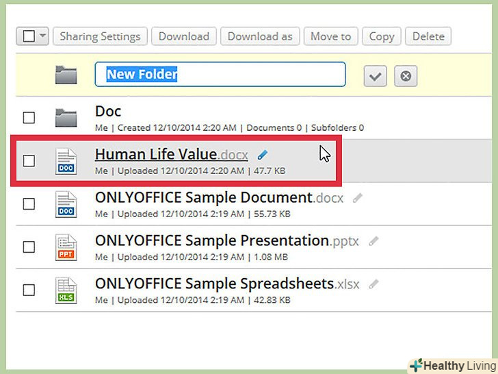 Відкрийте документ. він буде доданий в папку "Мої документи" на лівій панелі сторінки ONLYOFFICE. Клацніть по документу, щоб відкрити його в новому вікні.