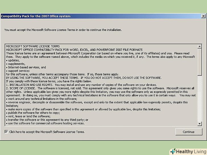 Запустіть інсталяційний файл. коли завантаження завершиться, запустіть файл FileFormatConverters.exe. Пакет буде встановлений у вашій версії Office, що дозволить вам відкривати файли DOCX.