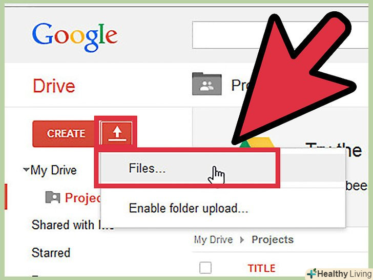 Завантажте файл. натисніть «Створити» gt; «завантажити файли " у верхньому лівому куті сторінки.- Відкриється вікно Провідника або Finder, в якому знайдіть файл.