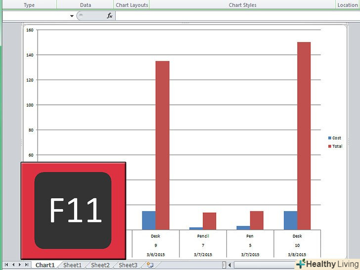 Натисніть на клавіатурі кнопку F11.це створить гістограму на аркуші діаграми. Лист діаграми це окрема сторінка, повністю призначена для графіка.