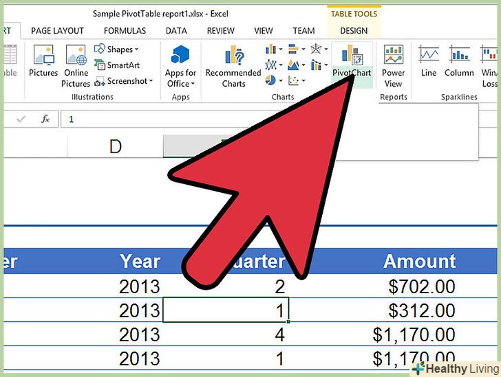 Перемістіть зведену діаграму в будь-яке місце у файлі робочої книги, яке Вам подобається.- Діаграма може бути розміщена в одному кутку аркуша вихідних даних, на цій же вкладці в зведеній таблиці або на окремій вкладці.