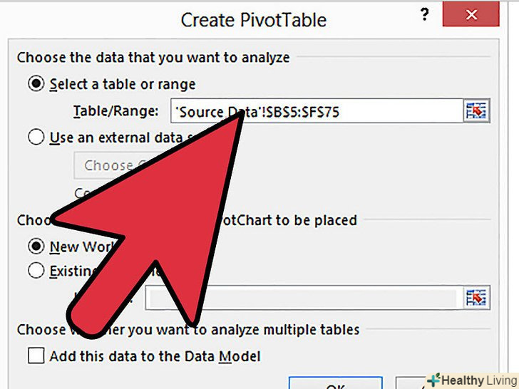 Встановіть діапазон для вашої зведеної діаграми. діапазон повинен бути таким же, який використовувався для створення зведеної таблиці.