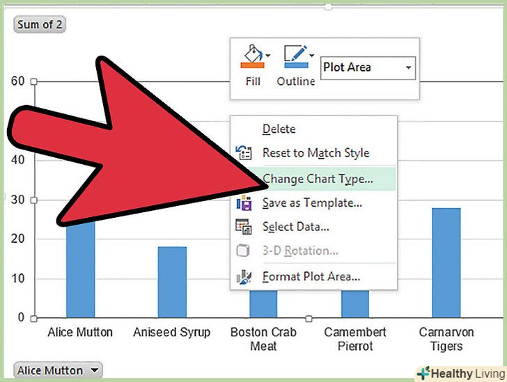 Змініть тип діаграми, клацнувши правою кнопкою миші на тлі області і вибравши з випадаючого меню «Змінити тип діаграми».- Спробуйте кілька різних типів діаграм, поки не знайдете той тип, який найкраще представляє ваші дані.