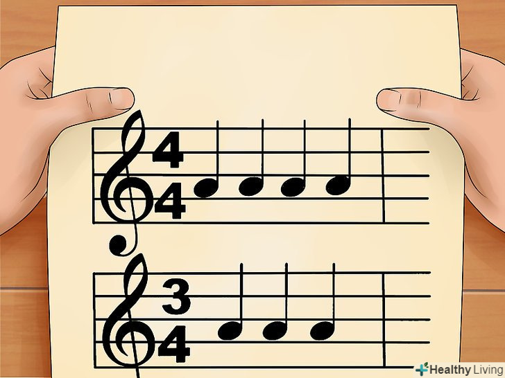 Освойте ритм і метр.метр можна сприймати як пульсацію музики або її серцевий ритм. Ви відчуваєте його інтуїтивно, коли слухаєте поп - або танцювальну музику. Простим прикладом метра може служити» бум, тсс, бум, тсс " в звичайному танцювальному треку.- У нотному записі такт представляється у вигляді дробу поруч з ключем. Як і у звичайної дробу, у цій теж є чисельник і знаменник. Чисельник, записаний у верхній частині стану, говорить про те, скільки часток в одному такті. А знаменник - про тривалість кожної частки (та сама пульсація, яку ви відбиваєте).
