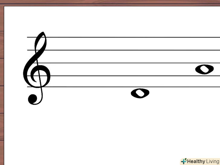- Запам'ятайте тривалості нот: Верхня нота «до» в кінці першої лінії і нижня нота «до» в кінці другої лінії — половинні ноти. Решта ноти-четвертні. Якщо знову уявити прогулянку, четвертна нота відповідає одному кроку, а половинна нота дорівнює двом крокам.